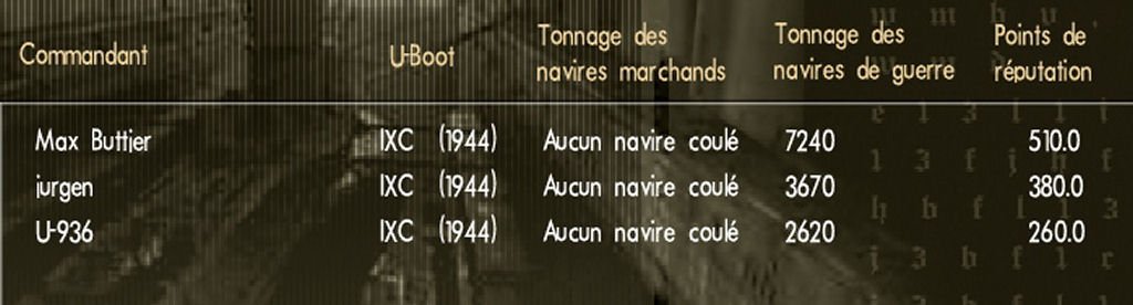Pas d'autres options pour moi de faire surface direction les mouilleurs de mines avec 6% d'intrégrité mais un destroyer près de u936 et à 3000 m de moi a placé un coup de canon et adieu jurgen.
