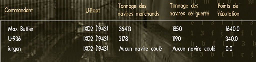 Parti au centre de la meute, j’ai eu un peu de mal à trouver les premiers contacts avec les marchands. Les DDs de la Navy faisaient aussi bonne garde et bien souvent, j’ai dû plongée à chaque fois que j’étais dans une position favorable. Au final, deux pétroliers T2 de coulé et deux transports de munitions, un bon résultat avec un Uboot un peu endommagé mais qui a pu rentrer à la base !