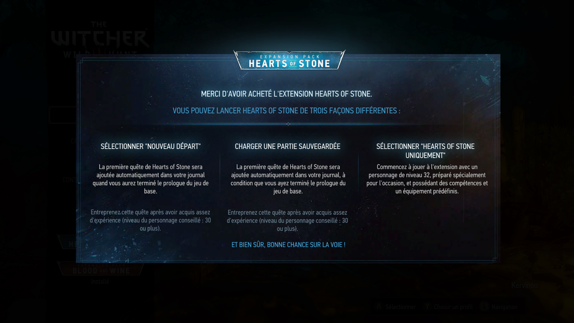 Pour les DLC, perso, j'ai continué ma partie, j'ai terminé Hearts Of Stones et je suis à Toussaint qui est très très grand !