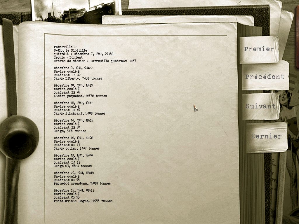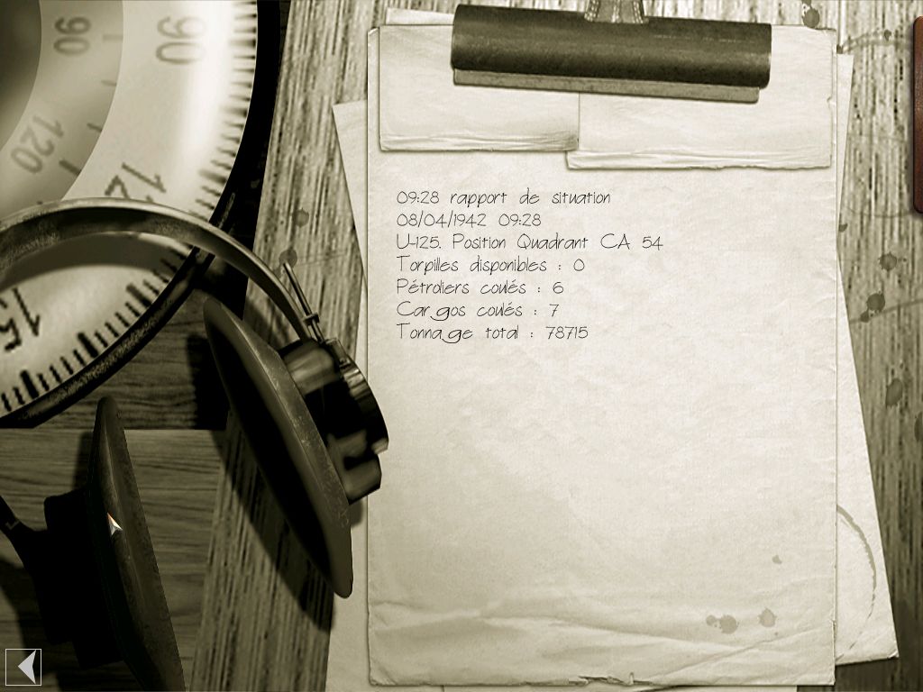 Galère... la mer est très forte, 3 de mes torpilles explosent avant d'atteindre la cible, les 3 autres manquent le but, je suis repéré, copieusement grenadé, endommagé légèrement et heureux de pouvoir échapper et rejoindre Lorient.